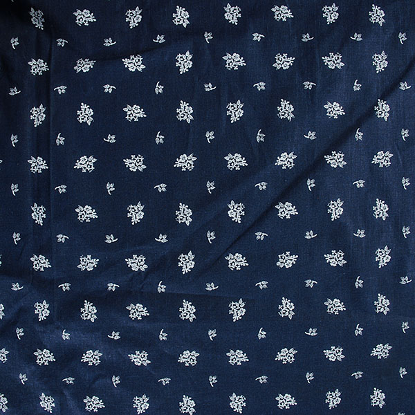 Bavlněná látka modrotisk drobný květinový vzor jemná bavlněná látka se vzorem drobných květin v bílé barvě na modrém podkladě. Bavlněná látka modrotisk drobný květinový vzor je lehce pružná vazbou a je mírně splývavá. Je vhodná i jako látka na patchwork.