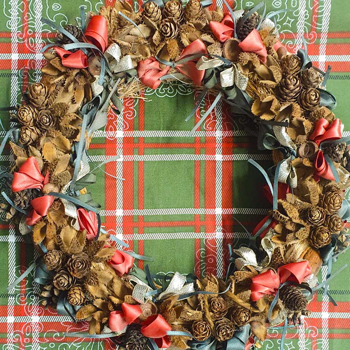Bavlněná látka vánoční vzor kostka zelenočervená