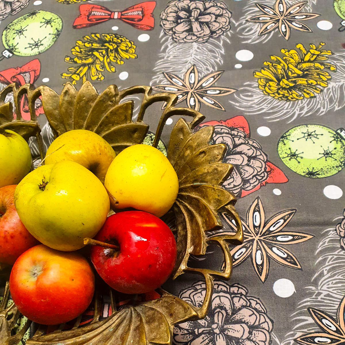 - bavlněná látka s vánočním motivem vhodná na kuchyňskou zástěru, kuchyňské chňapky či rukavice