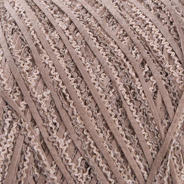 Bavlněná pletací příze stužková příze směs bavlna/akryl v barvě béžovorežného melíru s efektní vlnkou. Bavlněná pletací příze je středně silná, skládá se ze dvou buklé nitek a jedné stužkové příze, v pletenině bude tvořit nepravidelný melír.