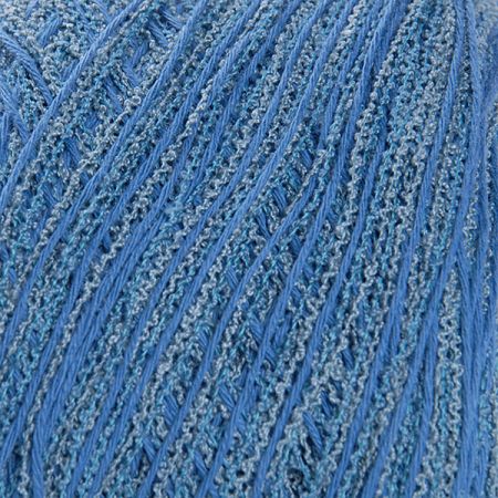 Efektní pletací příze s efektní vlnkou. Tato slabší příze bude v pletenině vytvářet nepravidelný melír v modrých odstínech.