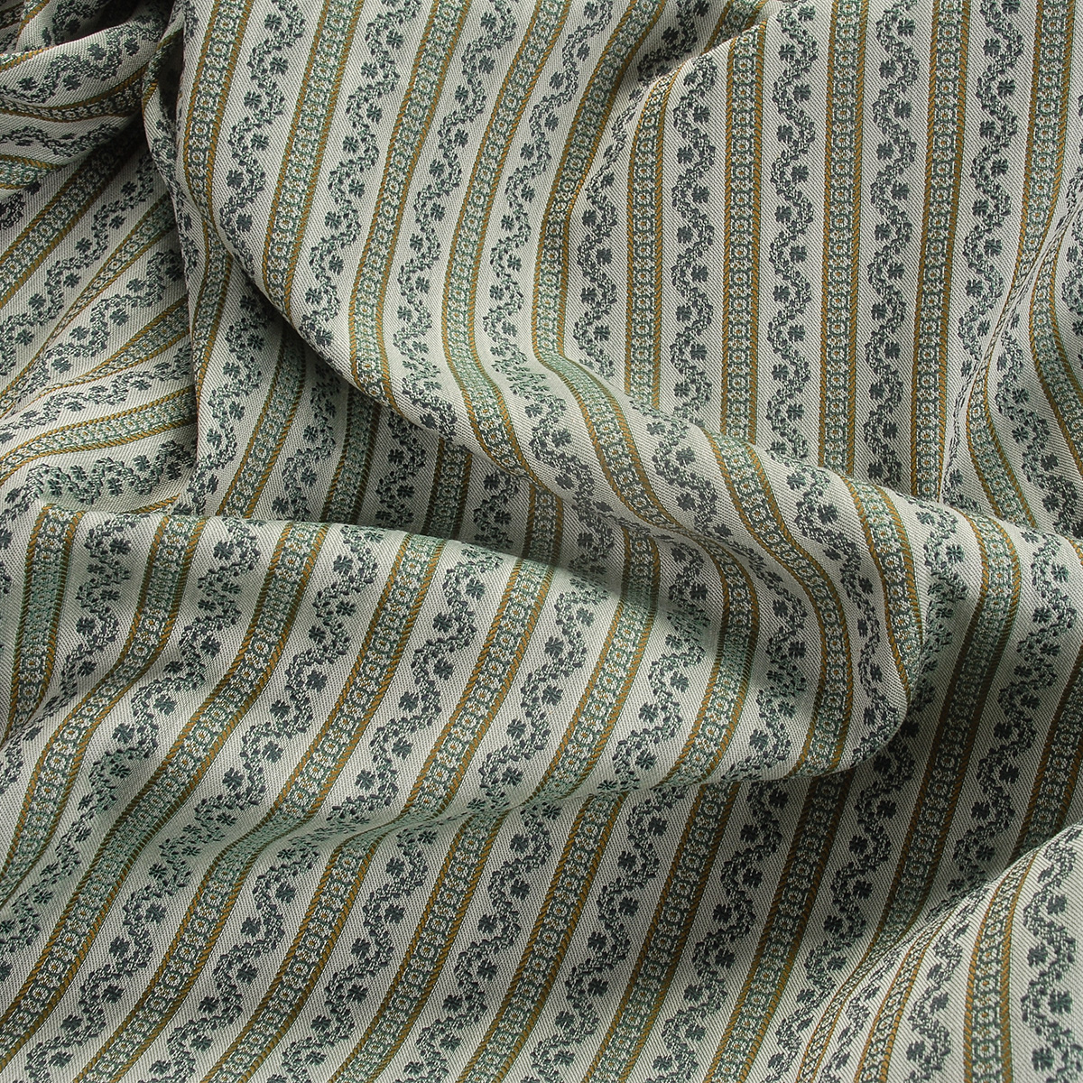 Brokát nepružný květy proužky zelné - elgenatní žakárová látka brokát s romantickým vzorem drobných květů a proužků v zelených barvách.Brokát nepružný květy proužky zelné - látka má lehce plastický povrch na omak, je středně silná a lehce splývavá. Látku lze použít pro efekt oboustranně.