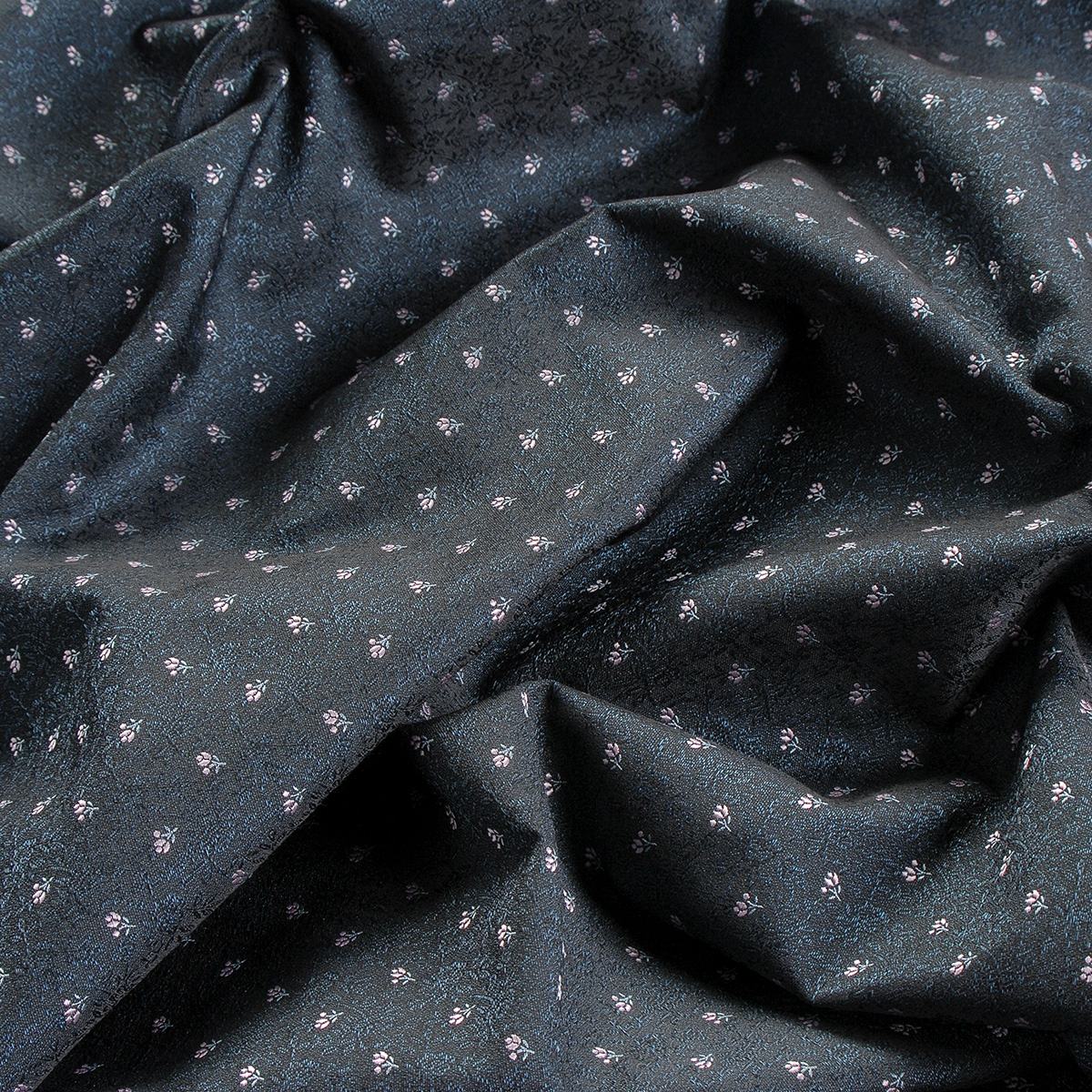 Brokát nepružný pevnější drobný květ modročerný