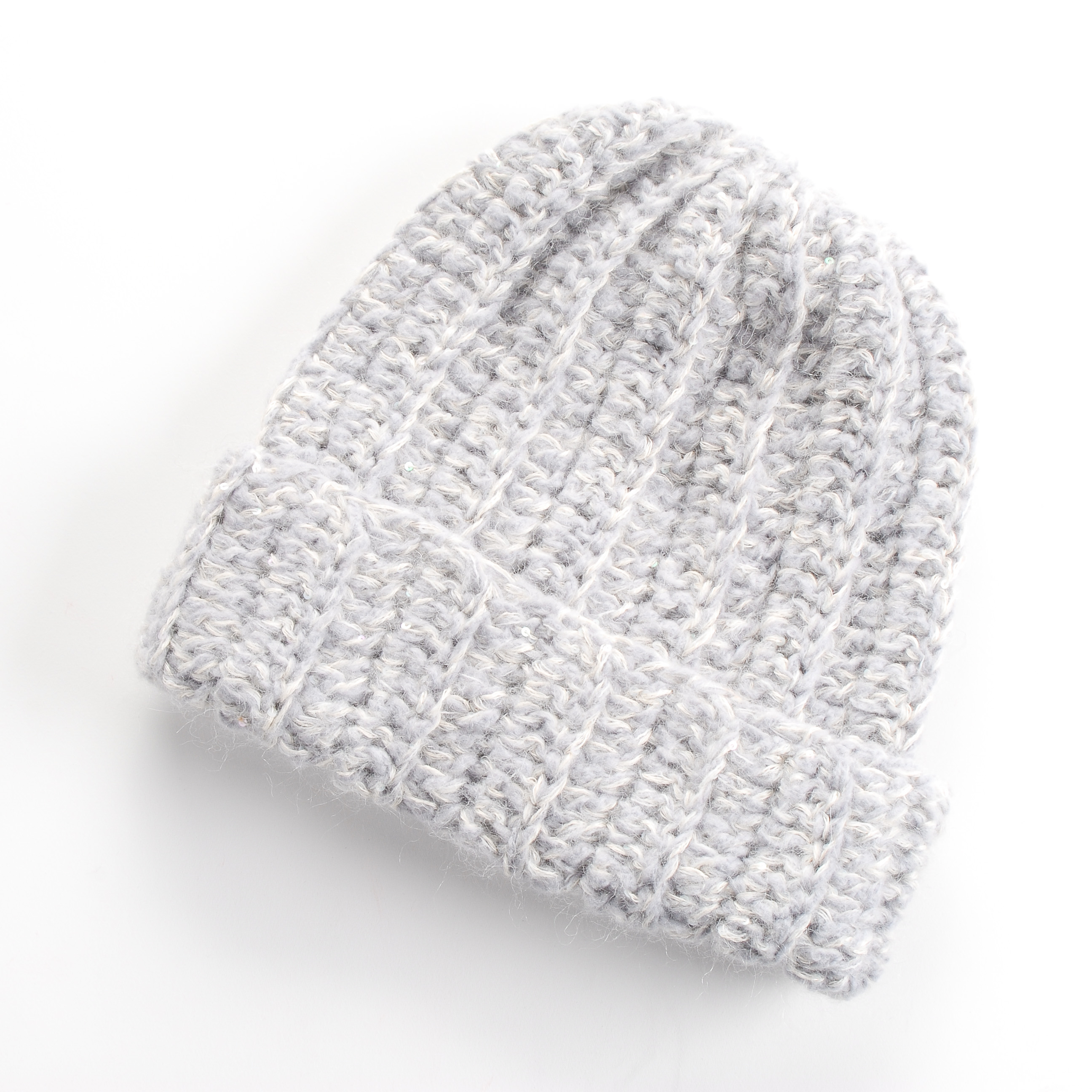 Háčkovaná čepice MarLen sv. šedá – nevšední háčkovaná čepice v elegantní barvě šedobílého melíru, decentně zdobená drobnými flitry stříbrné barvy. Čepice je vyrobena z kvalitní pletací příze Marlen (směs vlny, mohéru a akrylu). Díky tomuto složení je příjemně teplá, nekouše a jedná se o originál – je zhotovena pouze v jednom jediném provedení.