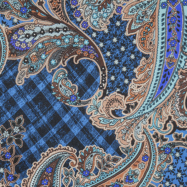 Hedvábný atlas pružný paisley vzor v modrohnědé v barvách světlé i tmavé modré, šedé, černé a tmavě hnědé.Hedvábný atlas pružný paisley vzor v modrohnědémádigitálně tištěný vzor, látka je pružná po délce, je splývavá, má jemný hedbký lesklý povrch a je velmi příjemná na omak.