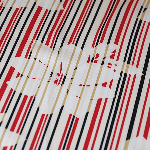 Velikost květu je cca 15x20 cm, na šířce látky cca 20cm je 5 celých květů, proužky jsou podélné a jejich šířka je cca od 2mm do 10mm.