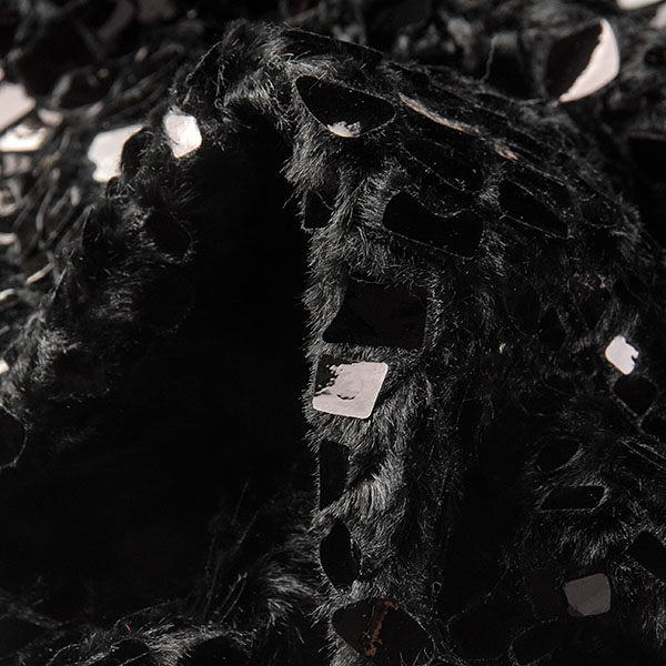 Imitace kožešiny černá s aplikací lesklých střípků