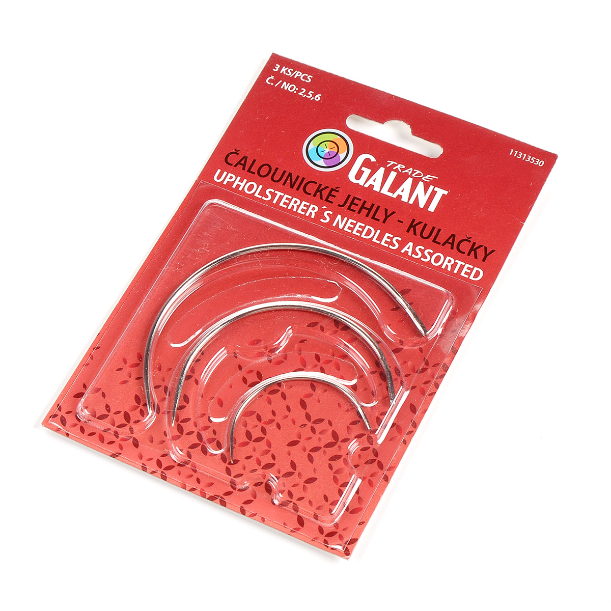 Jehly GALANT čalounické kulaté sada speciálních zahnutých kulatých jehel na ruční šití v papírové mapce vhodné na při domácí kutilské tvorbě .
