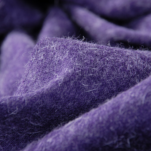 Úplet středně silný - jarní/podzimní úplet směs s šedobílým moherovým vlasem v barvě fialové. Látka je pružná, hřejivá a splývavá.