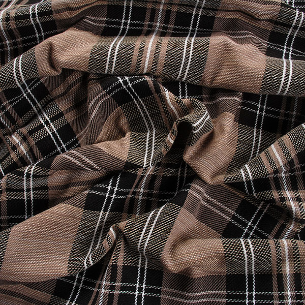 Kostýmová látka Art Fabrics Tartan hnědá- kostýmová látka design MarLen vyšší gramáže se vzorem kostek v barvách hnědé, bílé a černé. Kostýmová látka Art Fabrics Tartan hnědá látka je středně silná, lehce pružná svou vazbou po délce látky, je příjemná na omak, bude dobře držet tvar. Tkanina byla vyrobená v naší vlastní tkalcovně na Vysočině - snažíme se zachránit tkaní látek v ČR.