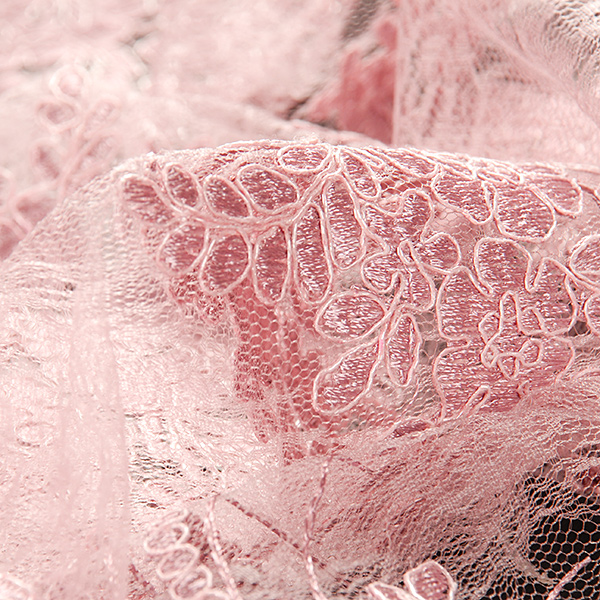 Efektní krajka výšivka na tylu ve starorůžové barvě s květinovým motivem na vzorovém tylu barvy. Podkladový tyl je starorůžové barvy, výšivka je doplněna starorůžovým lurexovým vláknem Metráž je pružná svou vazbou, splývavá a průsvitná.