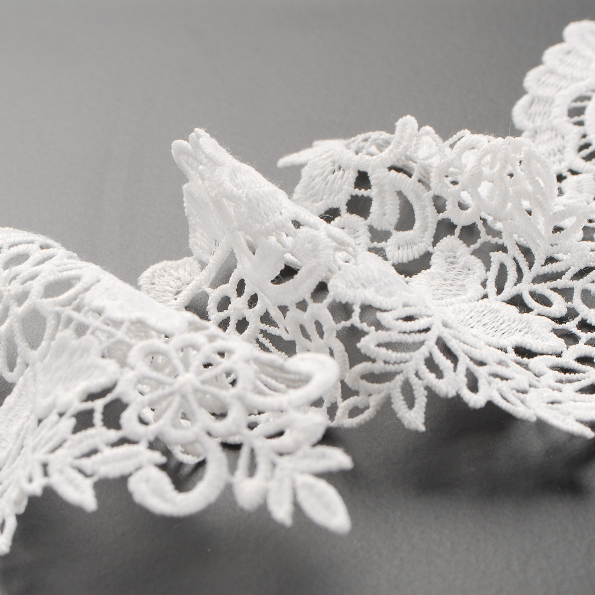 Krajka hrubá lem květinový vzor v bílé