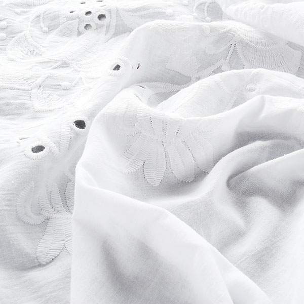Krajka madeira vyšívané kraje velký květ bílá- jemná bavlněná látka s velký květinovým madeirovým vzorem v bílé barvě. Krajka madeira vyšívané kraje velký květ bílá je mírně pružná svou vazbou, lehce splývavá a v místech "dírek" průsvitná, má jemný bavlněný povrch.