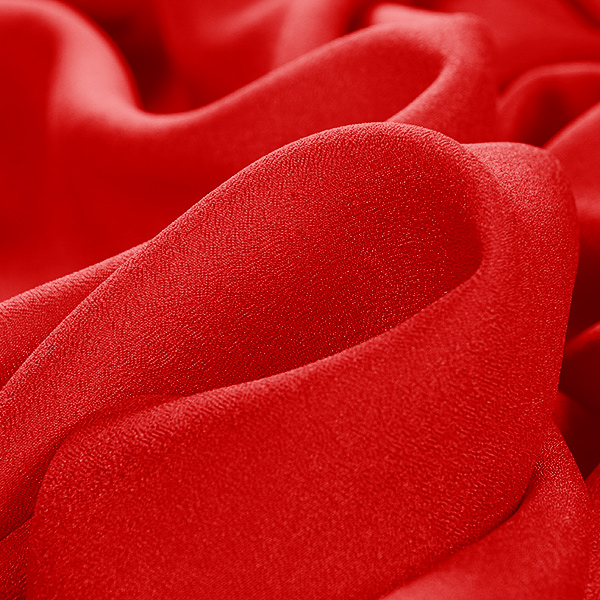 Krepdešín - jemný krepdešín s žebrovým lehce lesklým povrchem ostře červené barvy. Látka je bohatě splývavá, jen lehce průsvitná a pružná. Krepdešínová metráž dobře drží švy a je velmi oblíbená na elegantní vzdušné halenky, tuniky, šaty či luxusní spodní prádlo.