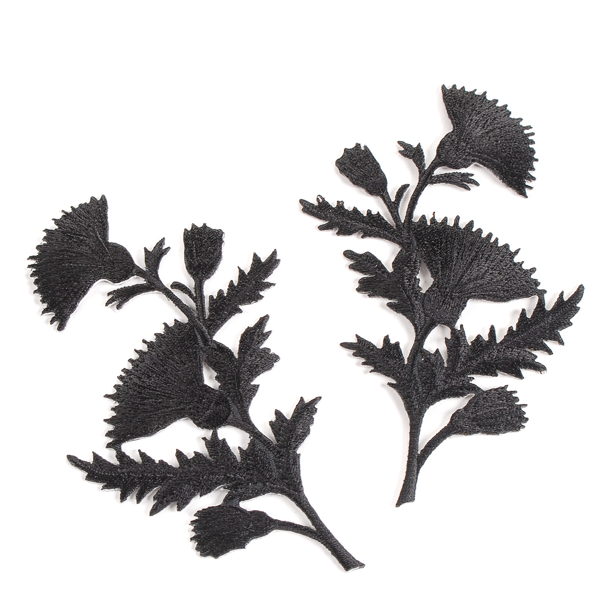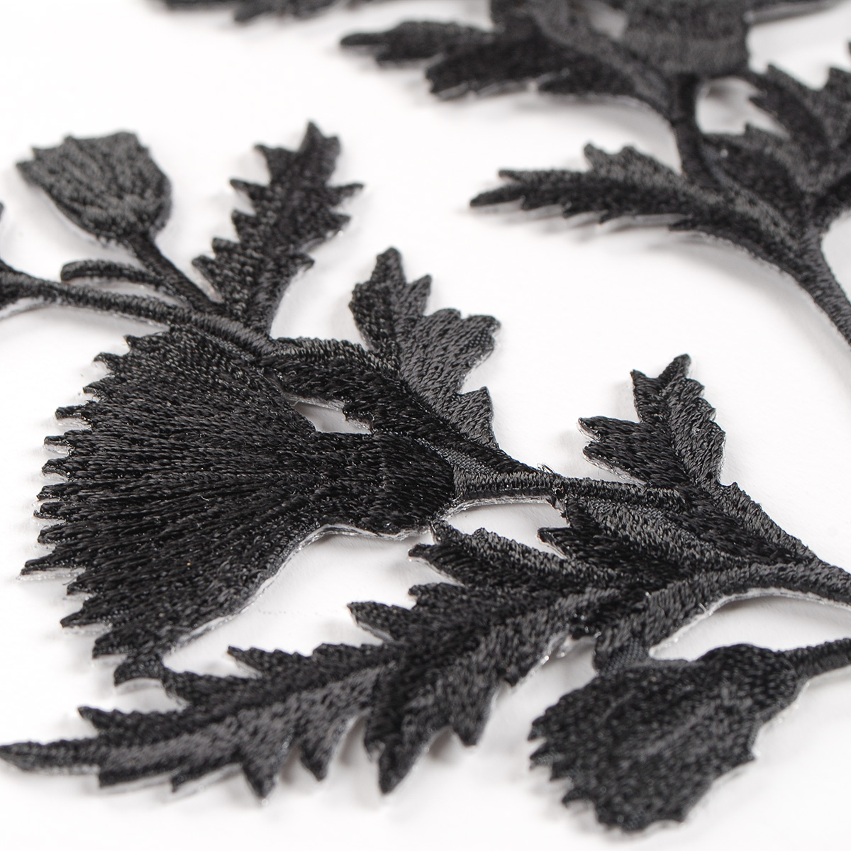 Nažehlovací párová aplikace květ bodláku v černé barvě. Romantická nažehlovačka je vhodná na dozdobení či opravě oděvu, ale i tašky, batůžku či psaníčka.