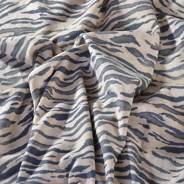 Látka samet motiv imitace zvířecí srsti -látka s jemným sametovým vlasem, věrohodná imitace zvířecí srsti. Látka je jemnější, splývavá a drží dobře tvar. Je vhodná jak na oděv, tak najde uplatnění i v bytovém textilu.