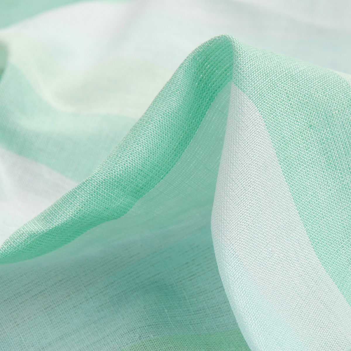 Len Art Fabrics širší pruhy světle zelené lněná látka vyrobena ve vlastní tkalcovně firmy MarLen s charakteristickou lněnou strukturou, se vzorem pruhů světle i tmavší zelené, mint barvy.Len Art Fabrics širší pruhy světle zelené lněná látka střední síly.