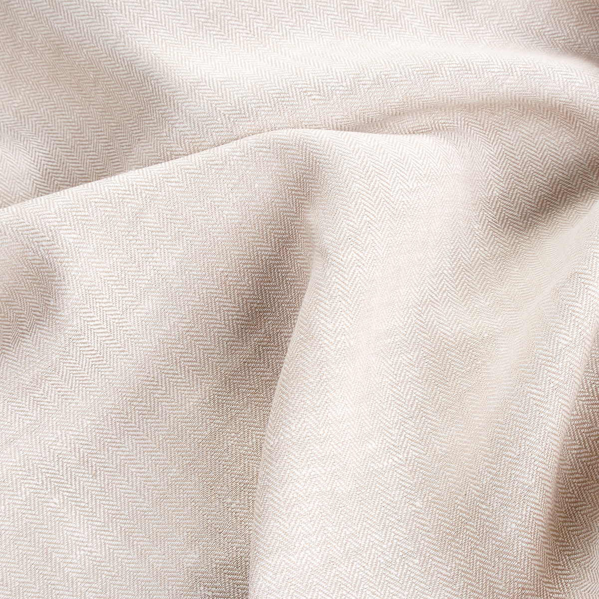 Len vzor rybí kost hnědosmetanový- elegantní jemná látka se vzorem rybí kosti v barvě hnědosmetanové. Len vzor rybí kost hnědosmetanový - látka je příjemná na omak, je splývavá a lehce pružná svou vazbou, má matný povrch.