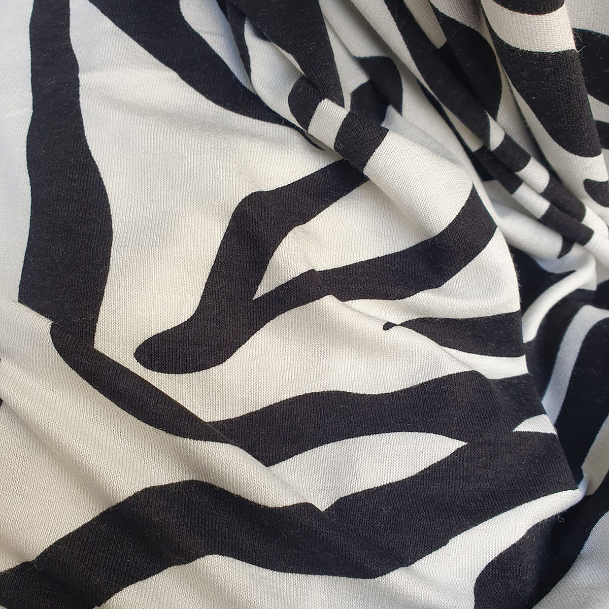 Letní úplet viskozový zvířecí vzor černobílý - jemný letní úplet zvířecí vzor zebra v barvách černé a bílé. Letní úplet viskozový zvířecí vzor černobílý