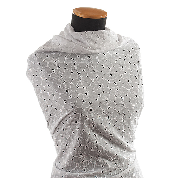 Vyšívaná bavlněná metráž madeira - jemná bavlněná látka plátnové vazby s výšivkou velkých květů. Látka je mírně pružná svou vazbou a je splývavá.