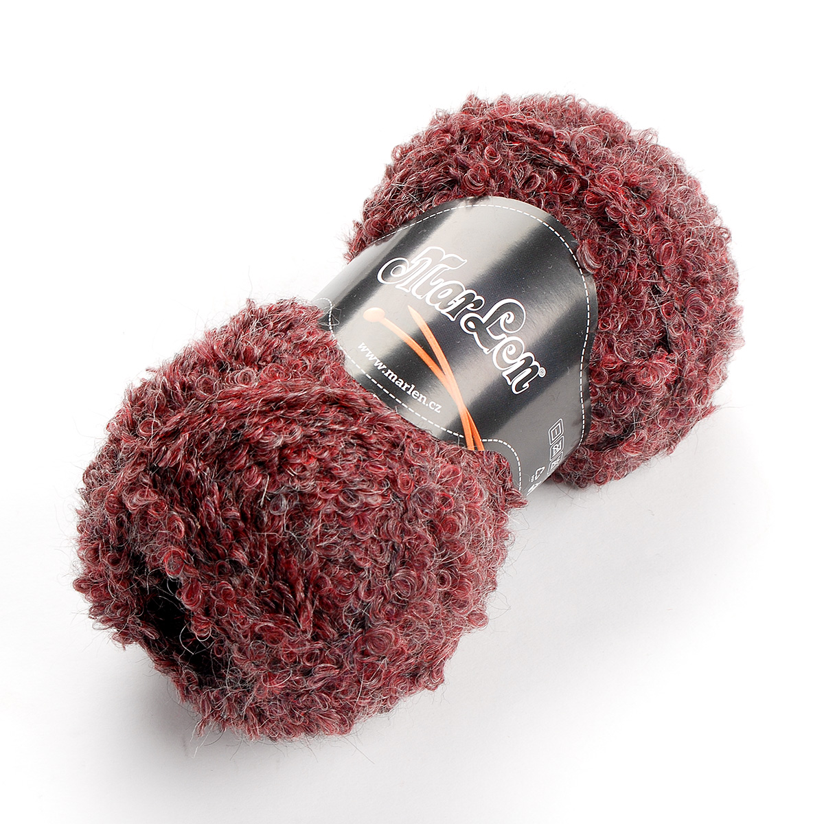 Mohérová pletací příze MarLen součky vínová v barvě tmavě vínového melíru s efektními součky buklé. Mohérová pletací příze MarLen součky vínová - pletací přízi lze použít i jako efektní příplet do svetru nebo na čepici či šálu, je jemná, nadýchaná a nekousavá, v pletenině bude tvořit nepravidelný melír a plastický vzor vystouplých součků - stačí plést jednoduchým hladkým vzorem.
