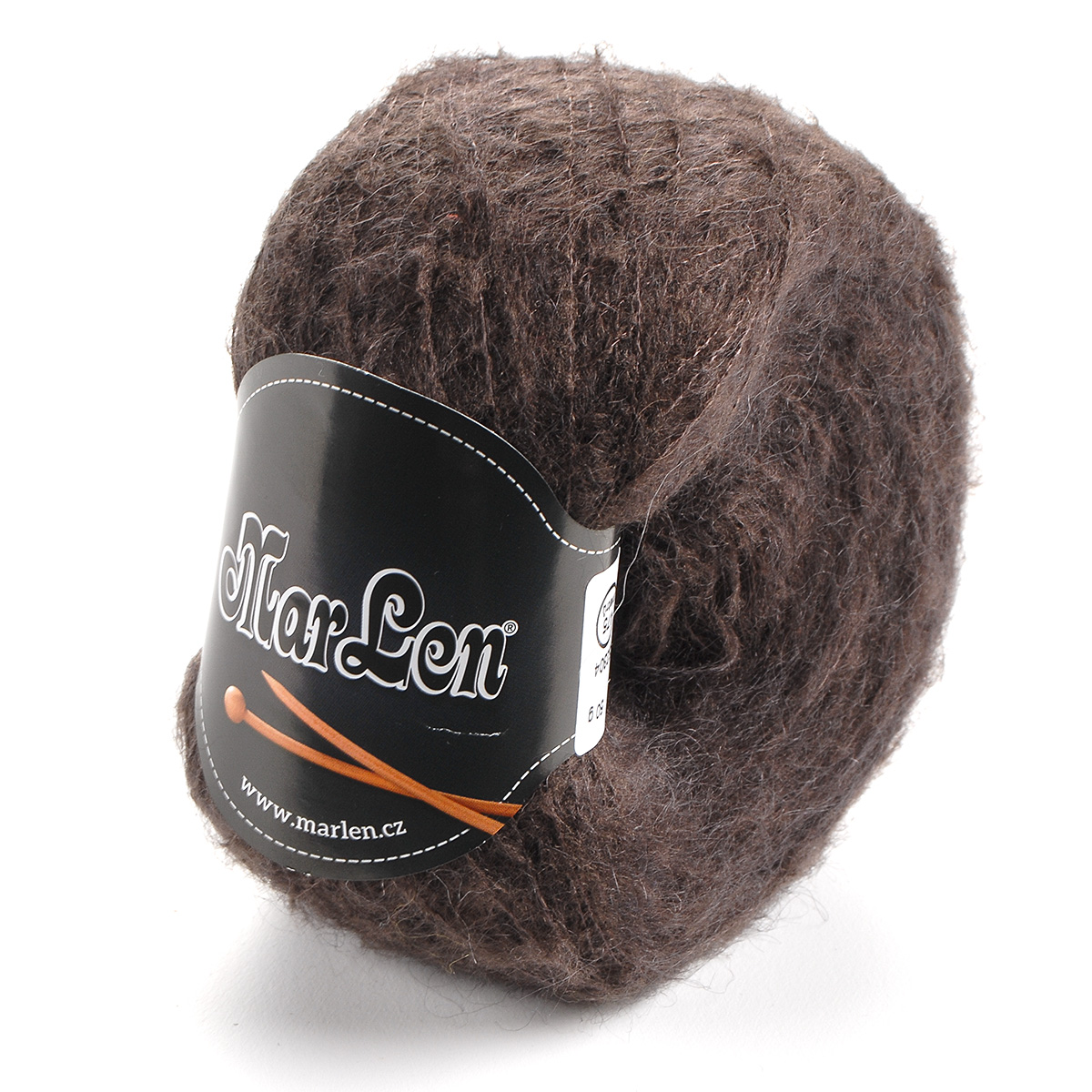 Mohérová pletací příze MarLen tmavě hnědý - tenká směsová mohérová pletací příze v barvě tmavě hnědé. Mohérová pletací příze MarLen tmavě hnědý - má jemný vlas, je tenká z jednoho vlákna a můžete jí použít i jako příplet.