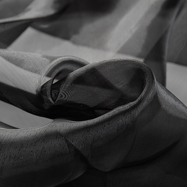 Organza jednobarevná - průsvitná lehká a lehce splývavá látka v černé barvě. Organza působí jemně a lehounce. Je vhodná na bohaté široké sukně nebo šaty, ale je vhodná i jako dekorace - záclona, dekorace na stůl a podobně.