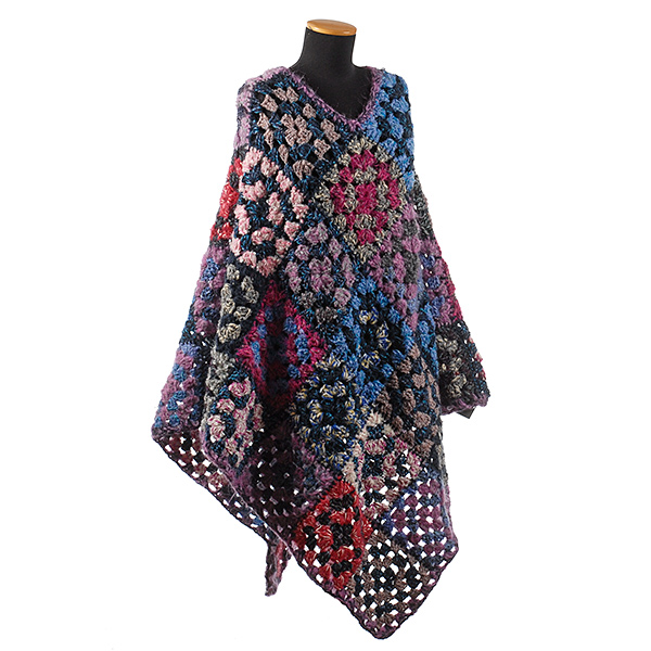 Originálníháčkované pončo složené z "kostek" kaskádovitě tvarované do pomyslné špice s výstřihem ve tvaru V a je doplněno samostatným rolákem. Háčkované pončo je ručně háčkované a je vyrobeno z pletací příze Marlen směs vlny, mohéru, akrylu.