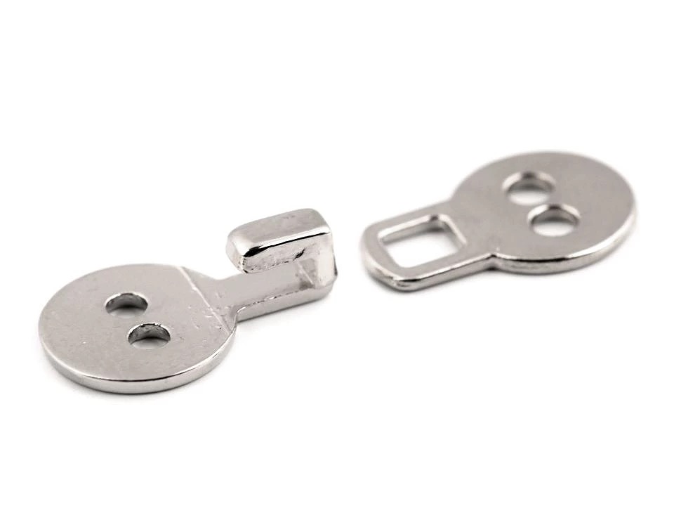 Ozdobné zapínání kovové hladké nikl černý- kovové hladké zapínání v klasickém provedení háček očko v barvě nikl černá. Ozdobné zapínání kovové hladké nikl černý - zapínání je složeno ze dvou částí, které se do sebe zaháknou. Každý z dílů je potřeba přišít na daný kus modelu. Lze prát bez obavy ze zreznutí zapínání.