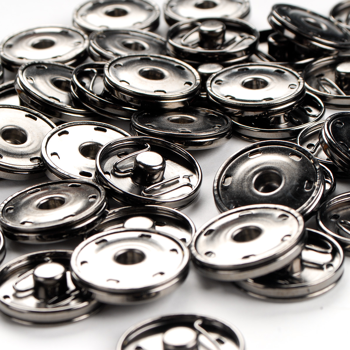 Patentky kovové velikost 25mm nikl tmavý elegantní velké kovové patentky o velikost průměr 25mm v barvě tmavěstříbrného niklu. Patentky kovové velikost 25mm nikl tmavý stiskací knoflík/patentka je složen ze dvou částí a sice díl pérová část a díl kulička. Každý z dílů je potřeba přišít na daný kus oděvu.