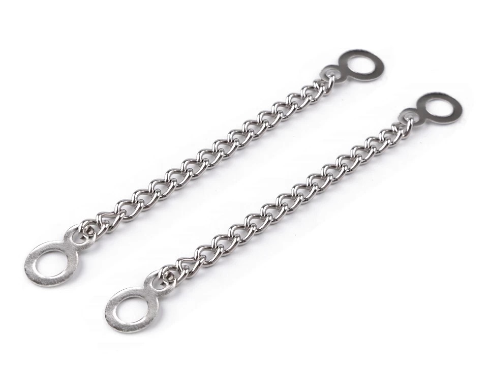 Poutko kovový řetízek nikl stříbrný pevné poutkou kovový řetízek vhodné na bundy a kabáty barva nikl stříbrný.Poutko kovový řetízek nikl stříbrný je vyroben z pevného kovového řetízku s očky na obou koncích, které slouží k přištií poutka na oděv.