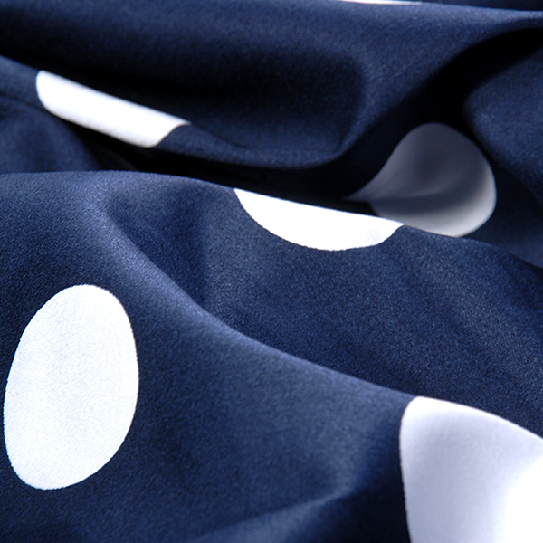 Pružná bavlnená látky vzor bodkami biela / tm.modrá