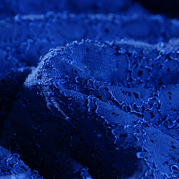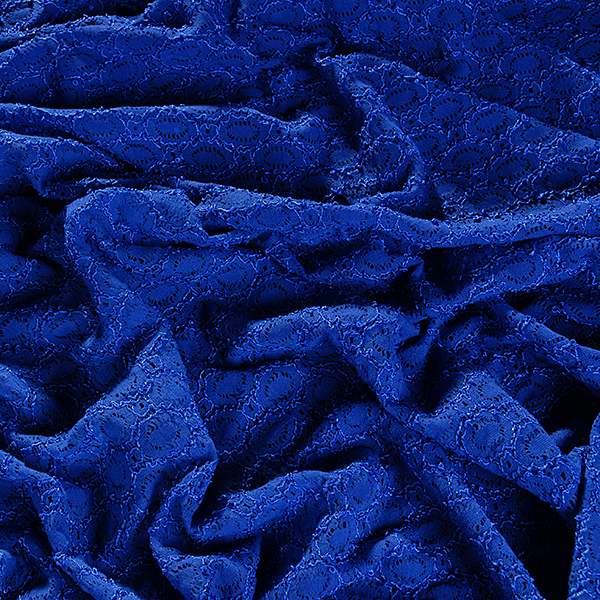 Efektní pružná krajka - látka pružná krajka v barvě jasně modré. Krajka je pevnější, hustě tkaná, jen lehce průsvitná a mírně splývavá. Můžete z ní ušít jak společenské šaty, tak i nevšední triko, halenu či krajkový kabátek a pokud zvolíte i barevnou podšívku, krajka tím pěkně vynikne.