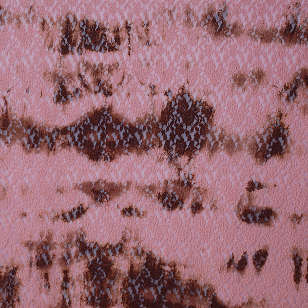 Efektní pružná krajka - látka pružná krajka starorůžové barvy v kombinaci s batikou v barvě hnědé. Krajka má květinový plastický vzor, je pevnější, hustě tkaná, jen lehce průsvitná a mírně splývavá.