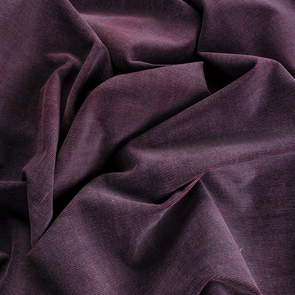 Látka, metráž - manšestr pružný v barvě tmavě fialovovínové na starorůžovém podkladě. Látka je pružná a dost pevná na lehké sáčko i kostýmek.