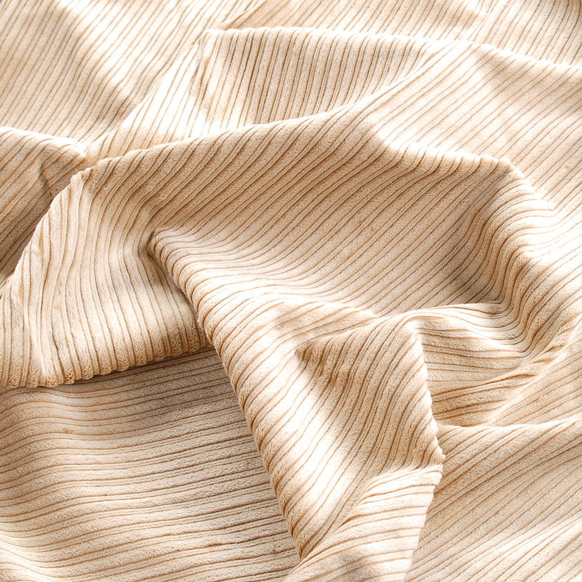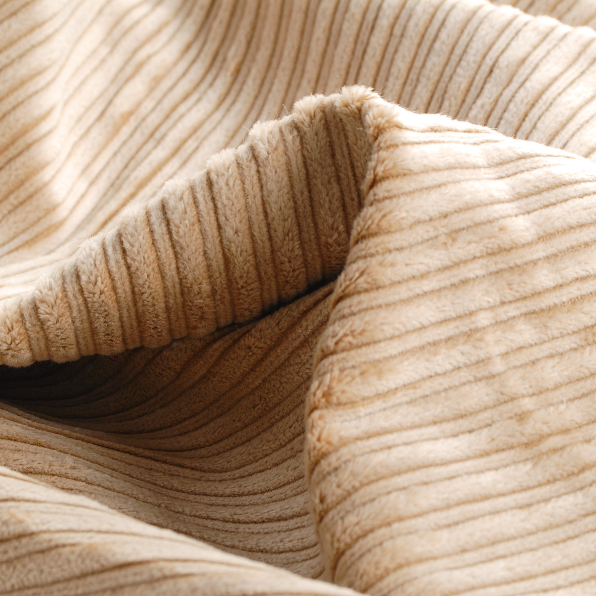 Pružný manšestr v příjemném světle hnědém odstínu zaujme zajímavým plastickým vzorem, kde se pravidelně střídají širší a užší proužky. Tento bavlněný manšestr má elegantní matný povrch s charakteristickým jemným vlasem. Díky přídavku elastanu je látka pružná a poddajná, přitom však zůstává dostatečně pevná pro ušití tvarovaného oblečení.