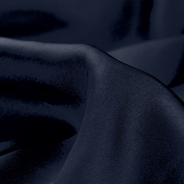Pružný satén matný látka hladký pevnější satén v tmavě modré barvě. Metráž má charakteristický saténový vzhled, je pružná, splývavá a neprůsvitná.