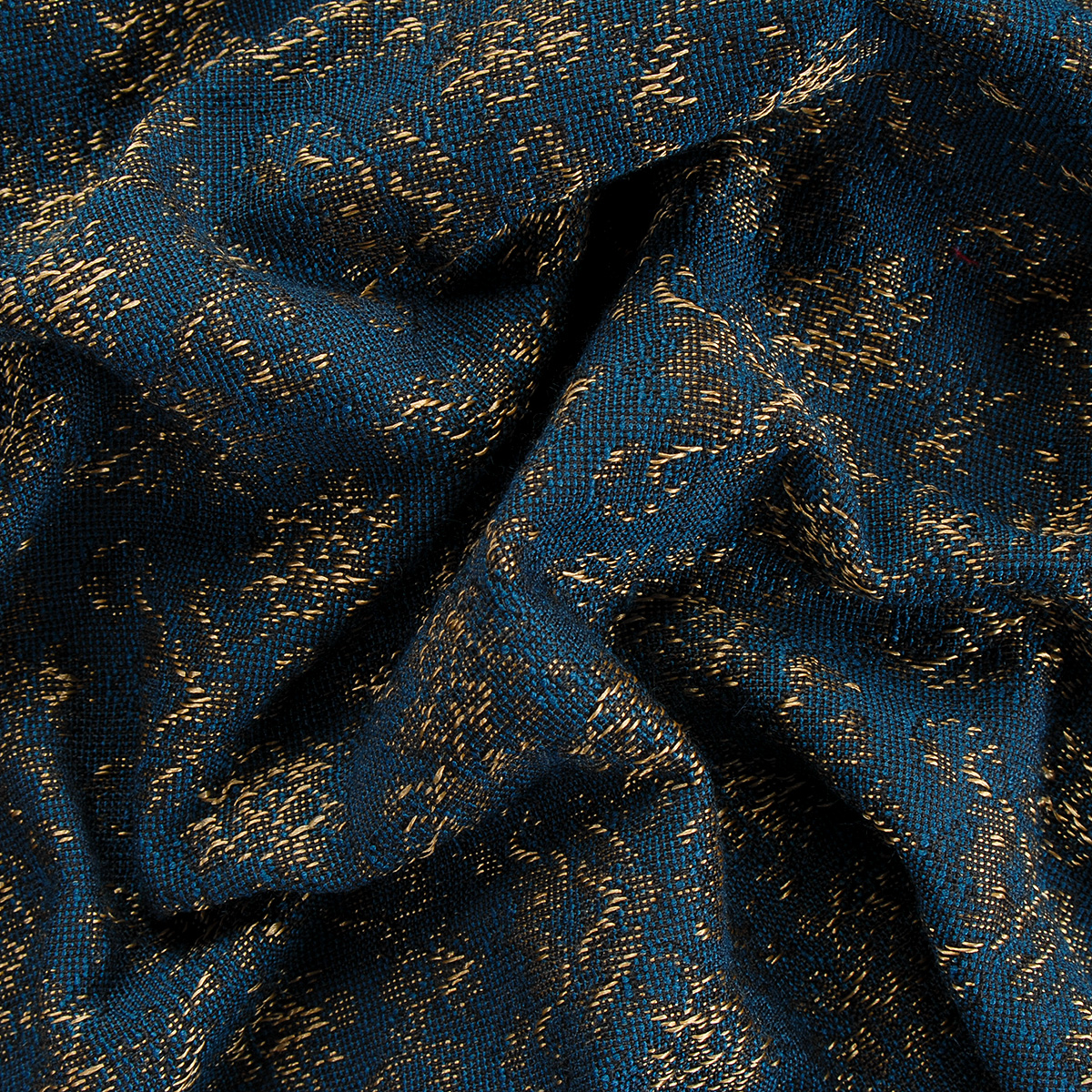 Replika historické látky Art Fabrics Rozálie petrolej- žakárová dekorační tkanina s ornamentálním vzorem zlaté barvy na podkladu petrolejové barvy.Repliku historické látky Art Fabrics Rozálie petrolej můžete použít na historické šaty z období rokoka. Replika historické tkaniny byla vyrobená v naší vlastní tkalcovně na Vysočině.
