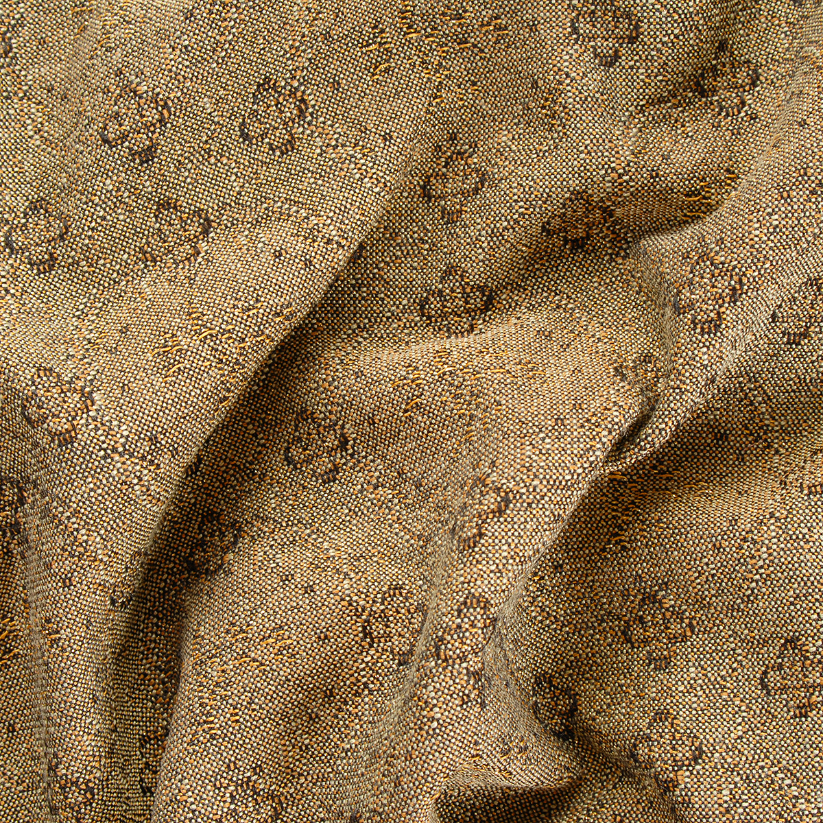 Replika historické látky Art Fabrics Meailon zelená- žakárová dekorační tkanina s ornamentálním vzorem okrovozlaté barvy na zeleném podkladu.Replika historické látky Art Fabrics Medailon zelená můžete použít na historické šaty z období gotiky. Replika historické tkaniny byla vyrobená v naší vlastní tkalcovně na Vysočině.