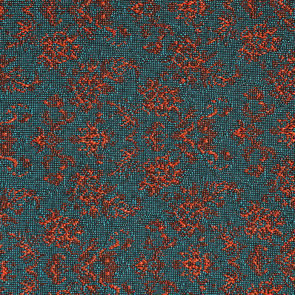 Replika historické látky- žakárová dekorační tkanina s ornamentálním vzorem v skořicové barvě na tyrkysovém podkladě. Repliku historické látky můžete použít na historické šaty z období rokoka. Replika historické tkaniny byla vyrobená v naší vlastní tkalcovně na Vysočině.