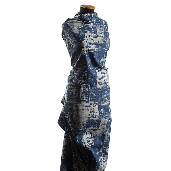 Látka, metráž - pružná riflovina nevšední tisk v barvách modré a slonové kosti. Látku je pružná a dost pevná i na sportovní sáčko, tubové šaty a kalhoty.