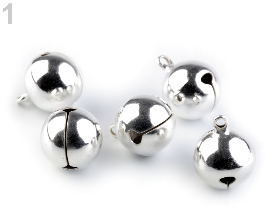 Rolnička Ø 8 mm stříbrné barvy kovové ozdobné rolničky stříbrné barvy krásně zvonivé.Rolnička Ø 8 mm stříbrné barvy jsou velmi dekorativní, mají kovový lesk a jsou lehké, nezatíží oděv.