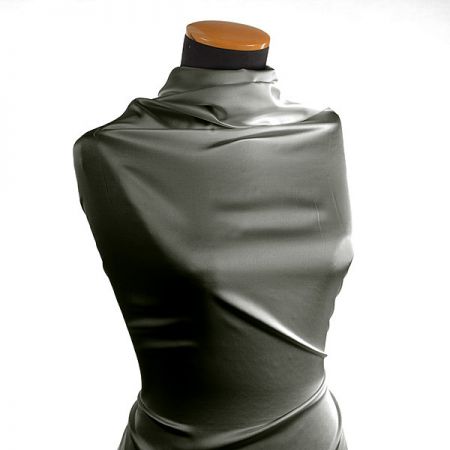 Satén hladký šedý - látka hladký jemný satén v šedé barvě.Satén hladký šedý - Látka má charakteristický saténový lesk, je splývavá a není průsvitná.
