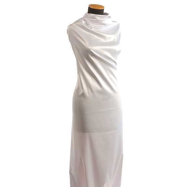 Satén pružný hladký látka hladký jemný satén v bílé lomené barvě. Satén pružný hladký má charakteristický saténový vzhled, je pružná, splývavá a neprůsvitná.
