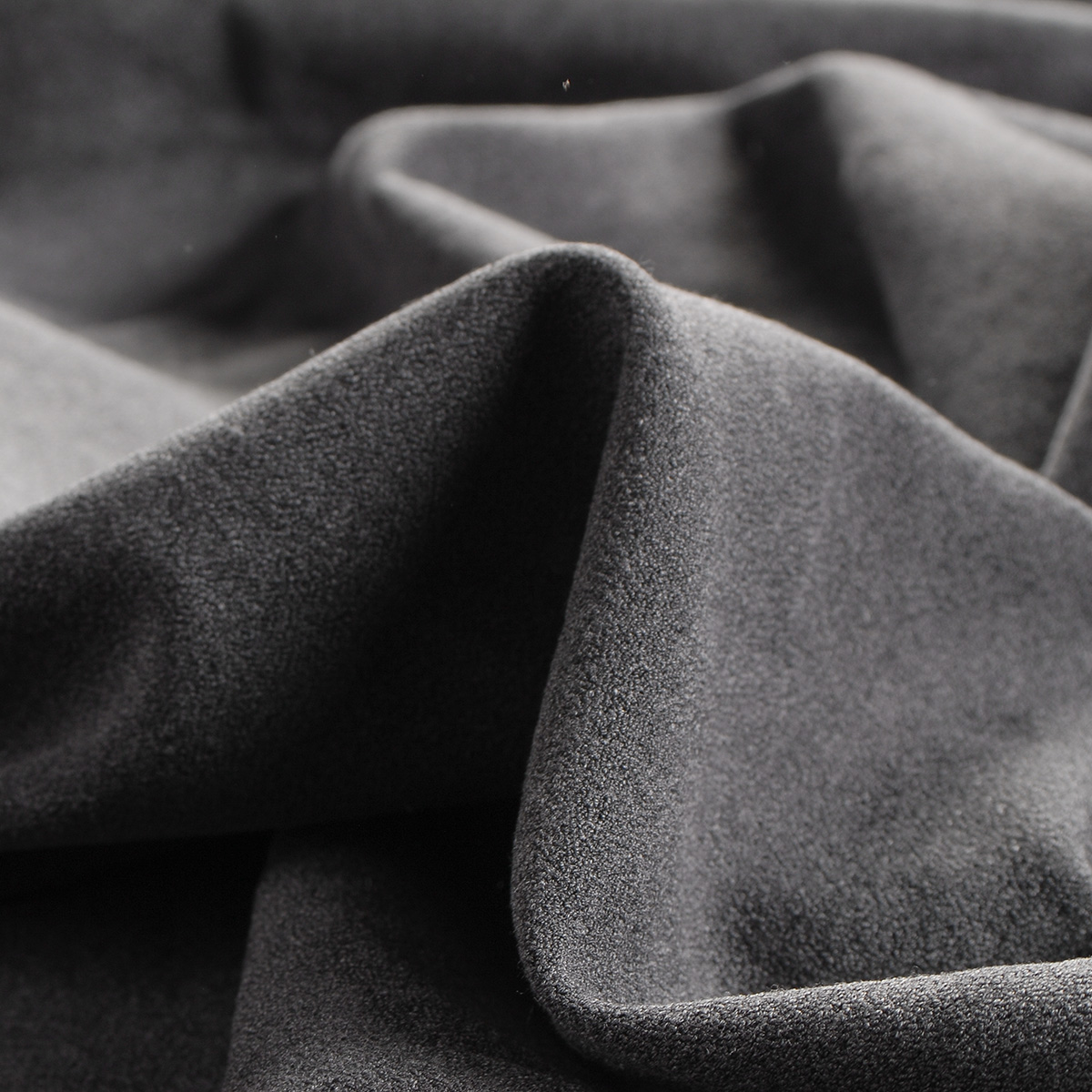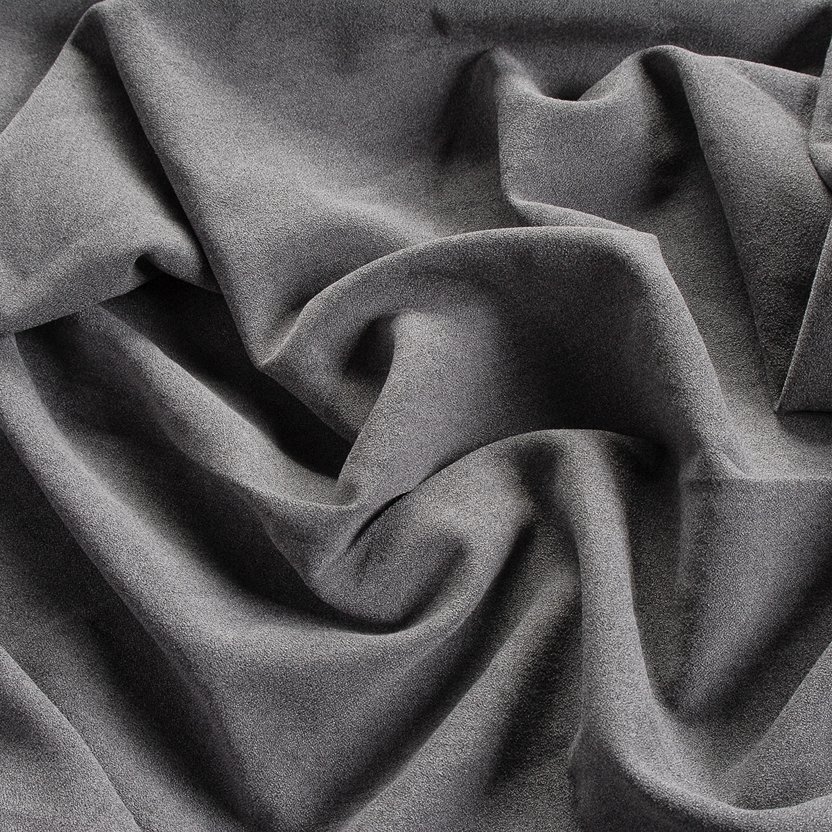 Šatový žoržet ve směsi s viskózou je látka vyšší gramáže s charakteristicky zrnitým povrchem v elegantní tmavě šedé barvě. Tento žoržet je jednostranně pružný, neprůsvitný a krásně splývavý, což z něj činí ideální materiál pro pohodlné nošení.