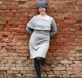 Šaty som mala na sebe celé popoludnie pri fotení a nosia sa naozaj krásne. Látka nehryzie, je aj na holej koži veľmi príjemná a hrejivá. S rôznymi doplnkami sa šaty dajú nosiť na niekoľko spôsobov. S houmleskou, čižmami a koženým krivákom neformálne. Alebo s lodičkami a zaujímavou brošňou formálne do práce či na schôdzku. Mne doplnky obstarala moja mamička, ktorá pletie – čiapky a čelenka sú z jej dielne.