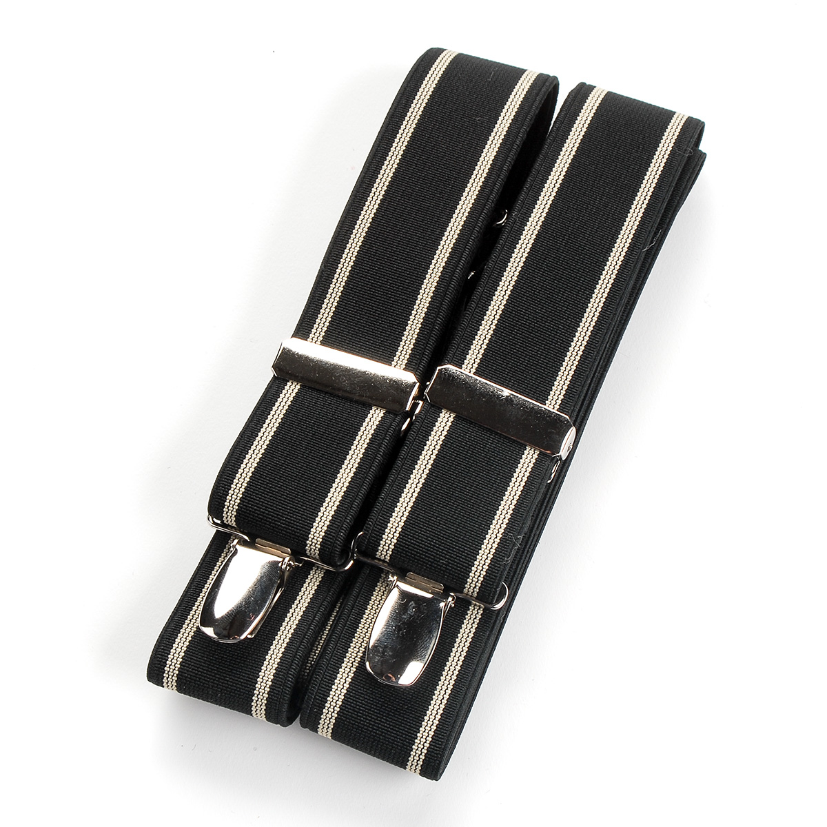 Šle pánské šíře 3,0 cm délka 125cm typ X proužek černobéžové elegantní pánské šle vzor X v barvě černé se světle béžovým proužkem. Šle pánské šíře 3,0 cm délka 125cm typ X proužek černobéžové kvalitné šle vyrobeny v České republice, ke kalhotům se přichytí pomocí žabek v zadní části. Překřžení v zadní části šlí je celokovové a mohou se lehce lišit designem šlové spony.