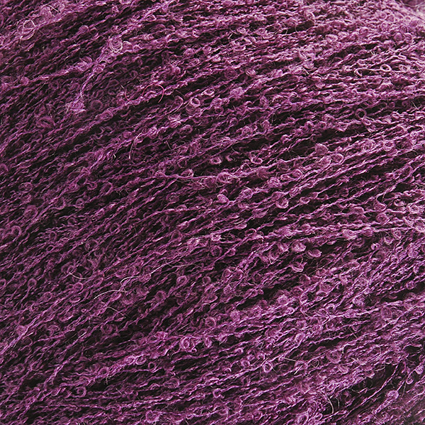Směsová pletací příze jemné bukle přadeno fialová součková bukle tenká pletací příze směs vlny a akrylu fialové barvy. Směsová pletací příze jemné bukle přadeno fialová bude v pletenině tvořit nepravidelný plastický vzor vystouplých součků - stačí plést jednoduchým hladkým vzorem. Pletací přízi lze použít i jako efektní příplet do svetru nebo na čepici či šálu, je jemná, nadýchaná a nekousavá.