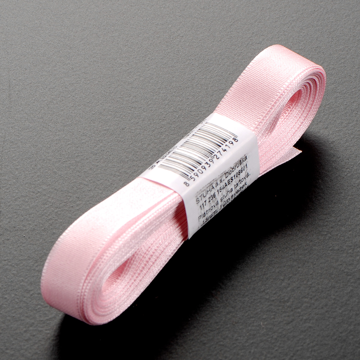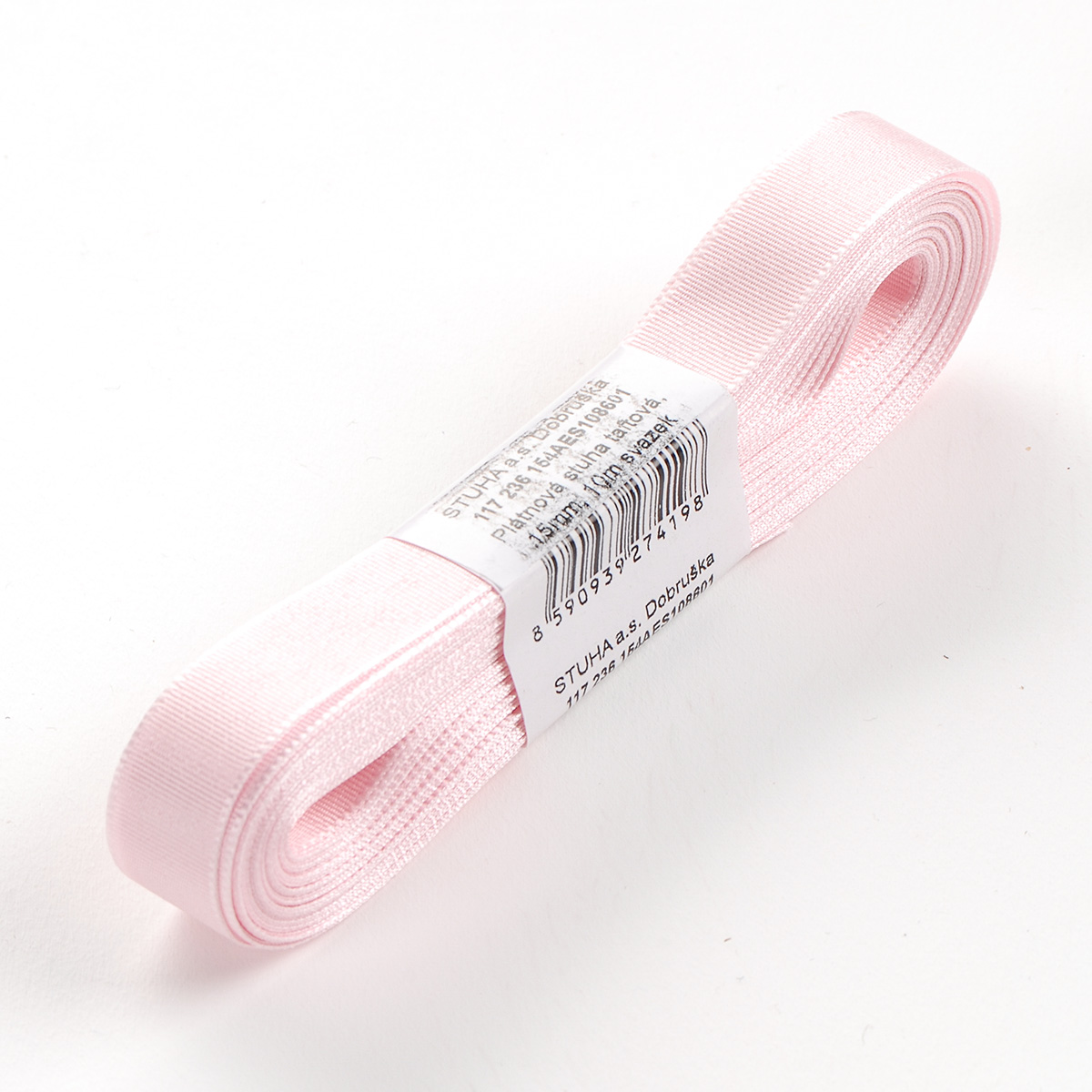 Stuha taftová šíře 15mm sv.růžová klasická taftová stuha tenká šíře 15mm ve světle růžové barvě v balíčku po 10m. Stuha taftová šíře 15mm sv.růžové má charakteristický taftový vzhled s lehce lesklým a zrnitým povrcehm. Stuha není lesklá jako atlasová, saténová stuha.