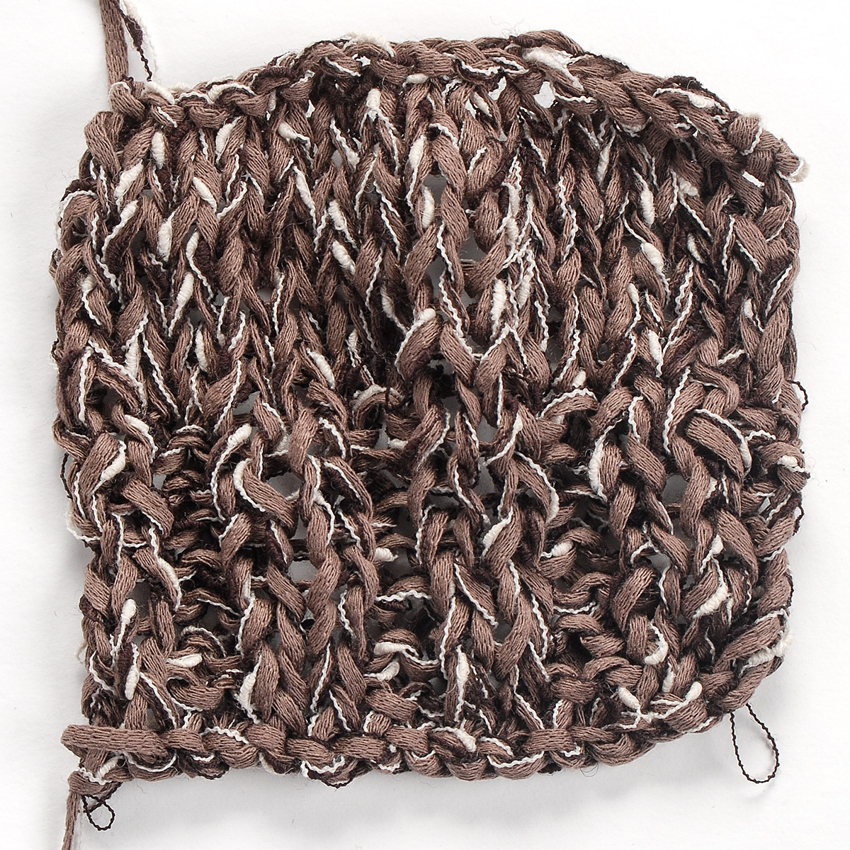 Stužková melírová pletací příze směs bavlna/akryl v barvě ořechovošedého melíru s efektní vlnkou. Příze je tenká, skládá se ze tří nitek a v pletenině bude tvořit nepravidelný melír.